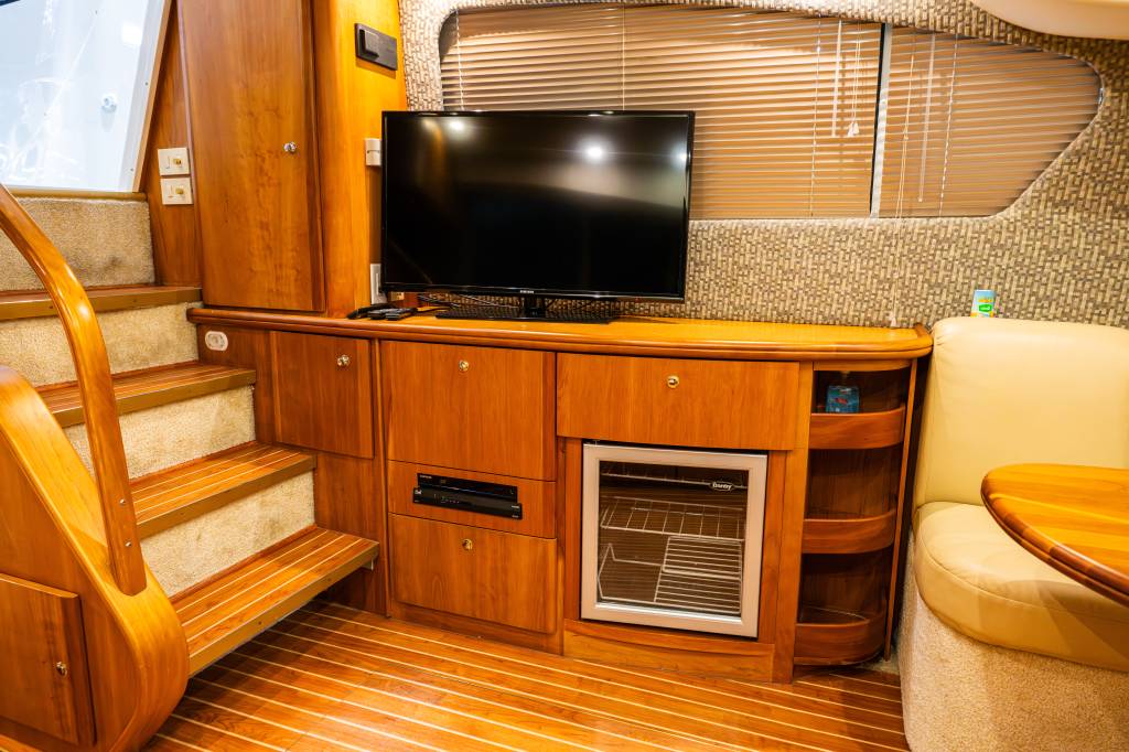 Bateau Cruiser SILVERTON 390 MOTOR YACHT 2003 Silverton 390 MY avec Cummins 6BTA5.9M3 Diesel avec environs 1200 heures. Beaucoup d’amélioration et de mise à jours ont été faites sur le bateau.se positionne sur le marché d'après les travaux réalisés par le propriétaire. Voila les modifications : Encloser cockpit poste de pilotage 2021, SeaWeed avec winch électrique et télécommande 2018, Propulseur avant, propulseur arrière 2018, caméra de recul 2018, Tracvision 2018, Axium 9 po 2017, autopilote plus remote 2018, Radio AIS 2017, Radio Sirius 3 zone 2018, Frigo et congélateur cuisine et cockpit 2018, Refroidisseur a vin 14 bouteilles 2017, Four Panasonic 7 fonctions 2018 valeur 1800 $, 2 toilettes neuves 2018, Climatiseur chambre des maitre 2017, Climatiseur centrale 2018, Table et boiserie intérieurs refait 2018, Table de cockpit acajou 2019 2000$, Tapis cockpit 2017 et toujours un entretiens mécanique minutieux. Concessionnaire de bateaux et pontons neufs et d'occasion, Mathias Marine est le concessionnaire ayant la plus grande surface pour la vente de véhicules nautiques, que vous cherchez: un bateau de plaisance, un open deck, un ponton, bateau de wake ou une chaloupe de pêche. Les plus grandes marques comme Bavaria, Four Winns, Kawasaki, WellCraft, Sessa Marine, Glastron, Manitou et bien d'autres. Mathias Marine Sports ne peut être tenu responsable d'une omission ou d'une erreur de transcription de l'information. Veuillez vous assurer de l'exactitude des données avec un représentant. Les images peuvent être à titre indicatif.