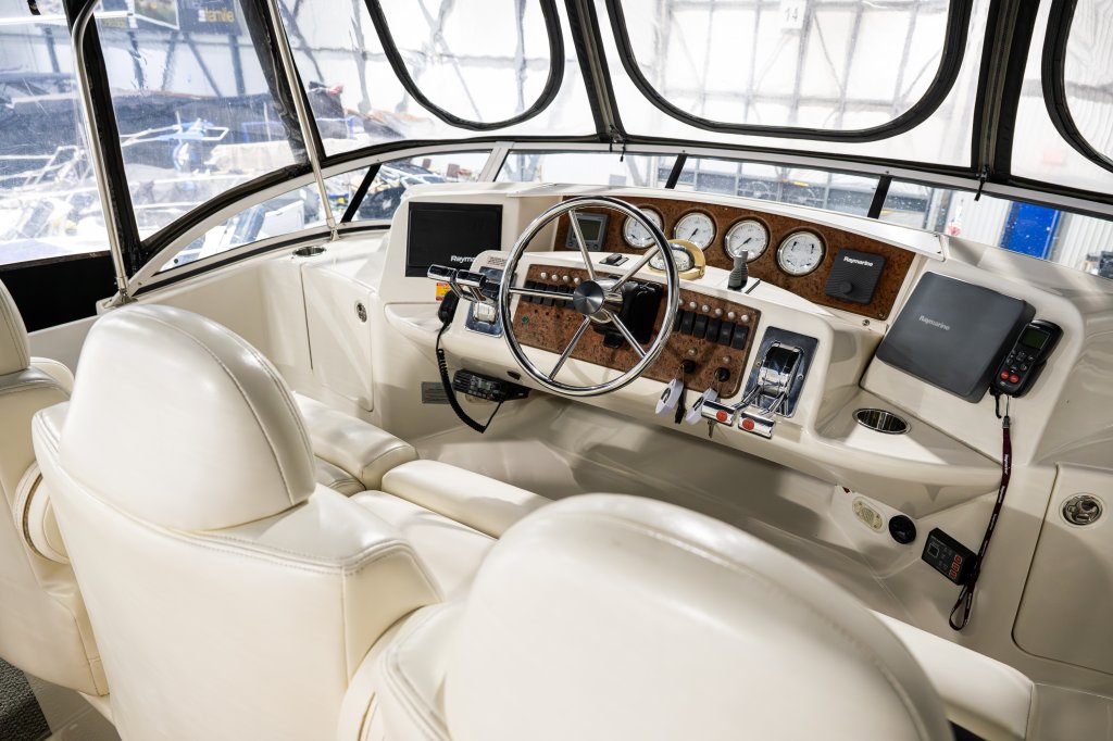 Bateau Cruiser SILVERTON 390 MY FLYBRIDGE CUMMINS 355 2003 Silverton 390 MY avec Cummins 6BTA5.9M3 Diesel avec environs 1200 heures. Beaucoup d’amélioration et de mise à jours ont été faites sur le bateau.se positionne sur le marché d'après les travaux réalisés par le propriétaire. Voila les modifications : Encloser cockpit poste de pilotage 2021, SeaWeed avec winch électrique et télécommande 2018, Propulseur avant, propulseur arrière 2018, caméra de recul 2018, Tracvision 2018, Axium 9 po 2017, autopilote plus remote 2018, Radio AIS 2017, Radio Sirius 3 zone 2018, Frigo et congélateur cuisine et cockpit 2018, Refroidisseur a vin 14 bouteilles 2017, Four Panasonic 7 fonctions 2018 valeur 1800 $, 2 toilettes neuves 2018, Climatiseur chambre des maitre 2017, Climatiseur centrale 2018, Table et boiserie intérieurs refait 2018, Table de cockpit acajou 2019 2000$, Tapis cockpit 2017 et toujours un entretiens mécanique minutieux. Concessionnaire de bateaux et pontons neufs et d'occasion, Mathias Marine est le concessionnaire ayant la plus grande surface pour la vente de véhicules nautiques, que vous cherchez: un bateau de plaisance, un open deck, un ponton, bateau de wake ou une chaloupe de pêche. Les plus grandes marques comme Bavaria, Four Winns, Kawasaki, WellCraft, Sessa Marine, Glastron, Manitou et bien d'autres. Mathias Marine Sports ne peut être tenu responsable d'une omission ou d'une erreur de transcription de l'information. Veuillez vous assurer de l'exactitude des données avec un représentant. Les images peuvent être à titre indicatif.